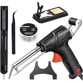 تتضمن مجموعة مسدس اللحام الأوتوماتيكي مسدس لحام ومضخة إزالة اللحام وسلك لحام وحامل لحام وملاقط. إنه مثالي ومساعد مثالي عند توصيل المكونات
